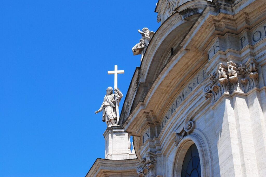 Aan de voet van het standbeeld liggen tekeningen voor paus Franciscus versierd met hartjes en blauw-gele kinderhandjes. De kleuren van de Oekraïense vlag. ‘Wordt snel beter papa Francesco’, staat op een ervan geschreven.